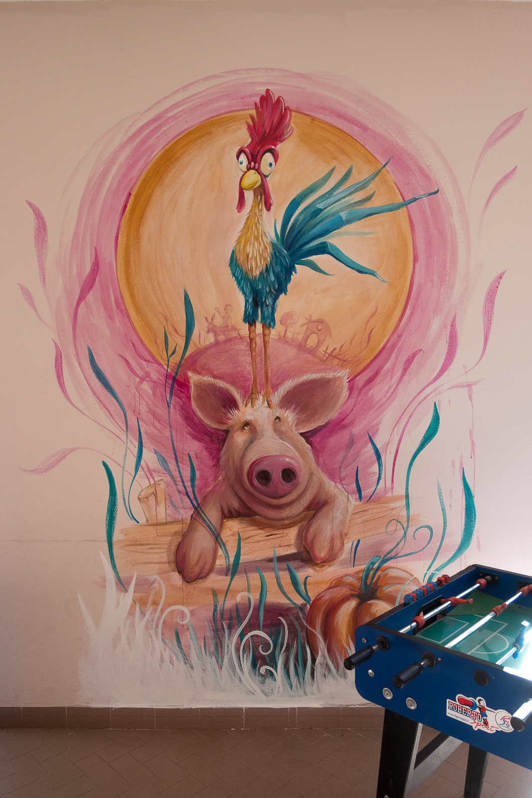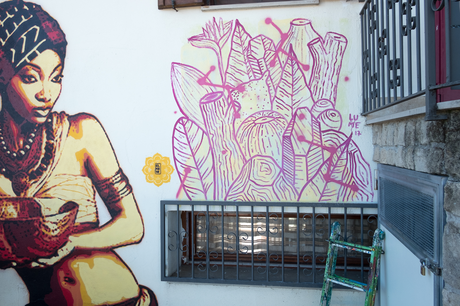 Così come il luogo, anche la maggior parte degli artisti sono stati confermati rispetto all’anno scorso. Quest’anno infatti è stato possibile ammirare un ulteriore contributo artistico alla struttura della fattoria da parte degli ormai già conosciuti: Gianluca Raro, Larva, Errico Di Cerbo, Lume, Salvatore Troiano, Ivan Del Giudice, Sdu e Opium che attraverso la loro arte hanno regalato ancora più magia ad un posto immerso nella natura sannita facendolo diventare ancora di più tappa obbligatoria per gli appassionati di street art e non solo. Per ritornare ai sentimenti di accoglienza e solidarietà che si respirano in quel luogo, quest’anno anche un ragazzo Gambiano Muhammed Cessay ha esordito come artista insieme ad altri tre connazionali, Alh Ebrima Sanyang Lamin Saidy Amir Fadlalah, che insieme formano i The Homebull Boy. L’opera, creata attraverso la tecnica dello stencil, è un tributo alla loro terra d’origine Il Gambia rappresentata dal volto di un leone con i colori dello stato Africano da dove provengono e da dove sono partiti per l’avventura della vita a fare da contorno. Inoltre, ad essere stato inondato di street art è stato anche un capannone situato nei pressi della fattoria, facente parte dei beni culturali confiscati alla camorra, rimasto ancora inutilizzato ma che ora gode di nuova linfa grazie agli interventi di Raro, Opium e Larva. Alla fine è stato presentato anche il libro, Ortika Big Family, che contiene la storia di entrambe le edizioni e testimonia attraverso foto e citazioni quello che si respirava durante il festival; ovvero la sensazione di star facendo qualcosa per gli altri ritrovandosi allo stesso tempo in un ambiente sereno e amichevole ed il tutto reso ancora più bello dalla tanta street art che chi c’era ha potuto ammirare.